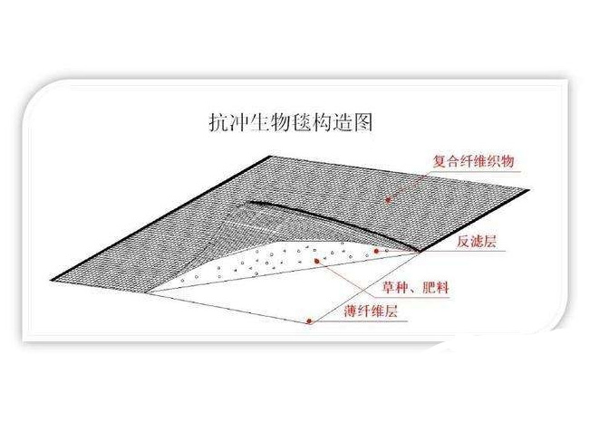 抗沖生物毯是一種復合纖維織物與多樣化草種等配套養護材料一體化的新型生態護坡、水土保持產品。