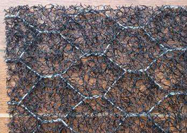 組合式產品,土工材料與綠格網相結合而成,兼具土工材料及綠格網的優點。土工材料為聚丙烯材質,綠格網鋼絲通常選用 防腐性能好的鍍10%鋁鋅合金鋼絲。